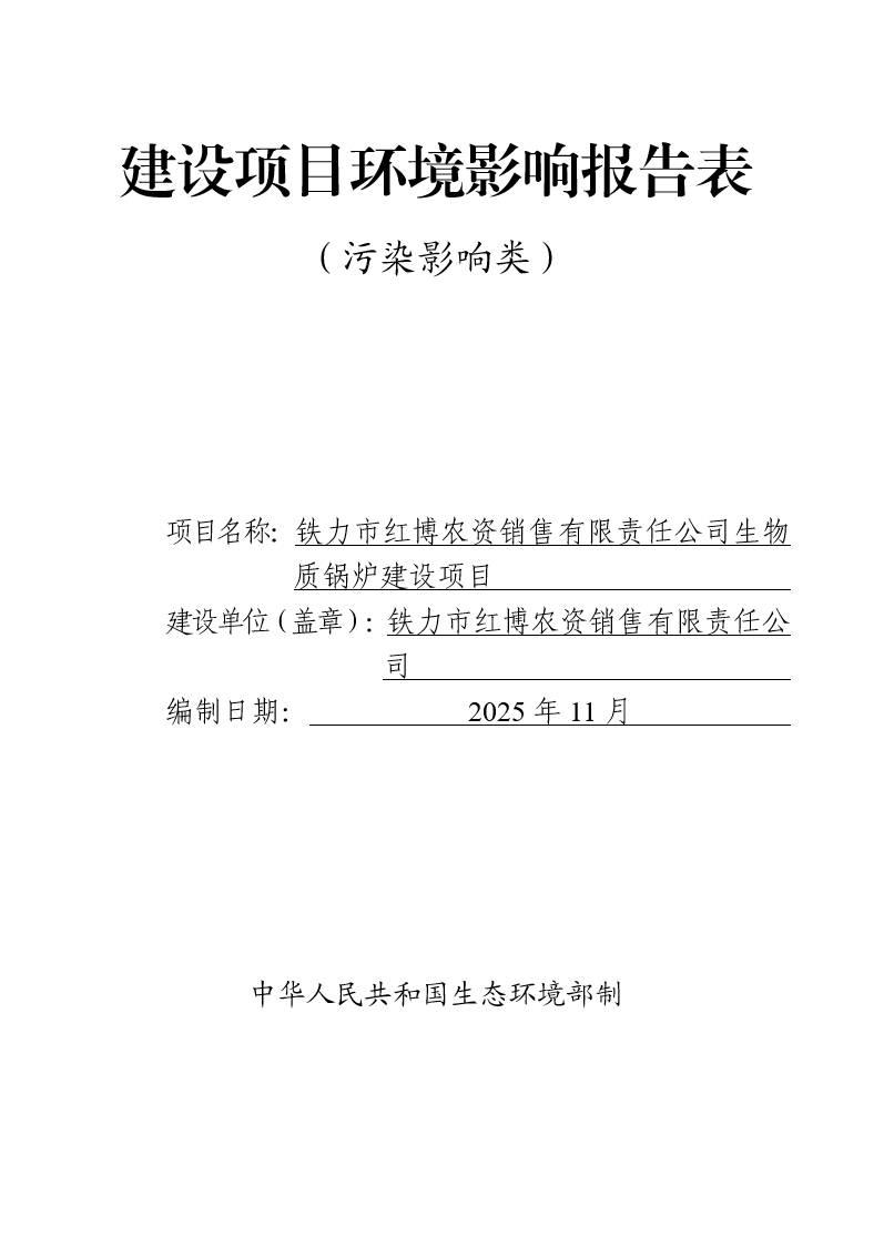 鐵力市紅博農(nóng)資銷(xiāo)售有限責(zé)任公司生物質(zhì)鍋爐建設(shè)項(xiàng)目環(huán)境影響報(bào)告表